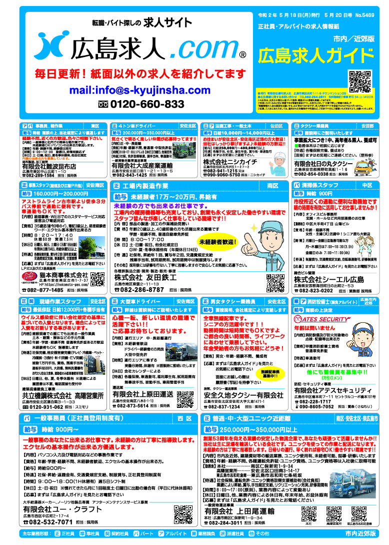 「広島求人ガイド」5月18日号 発行のお知らせ